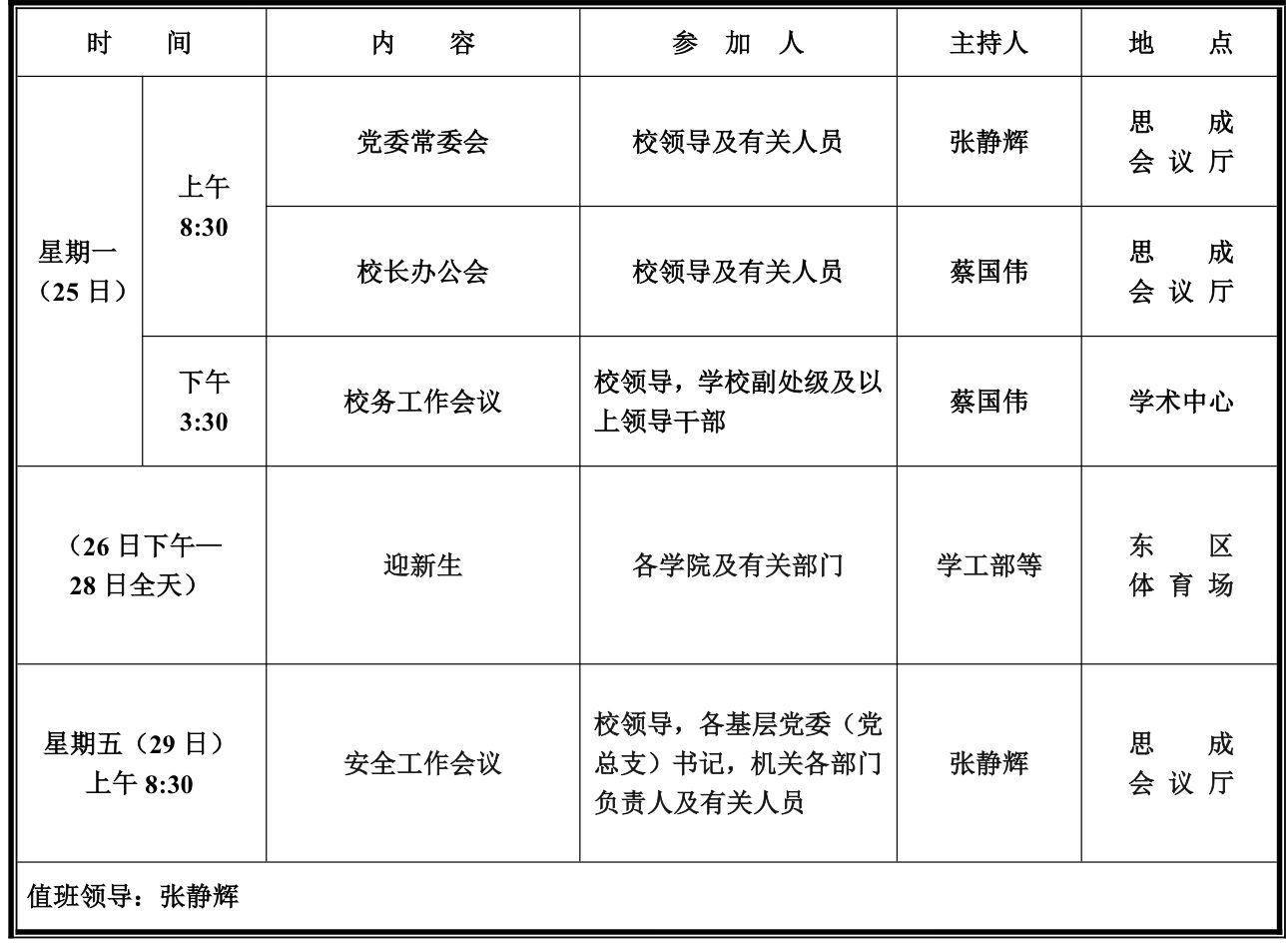 第一周学校活动安排