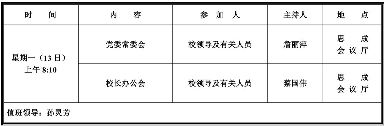 第八周学校活动安排