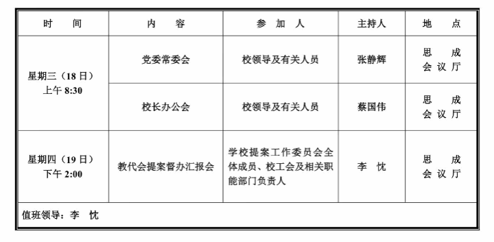 第四周学校活动安排