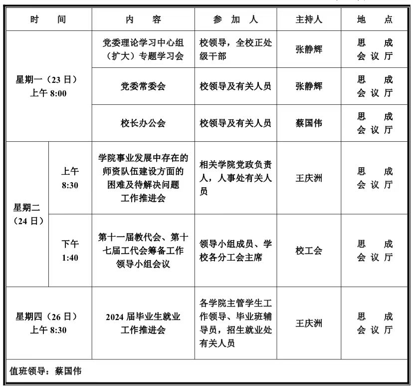 第十周学校活动安排