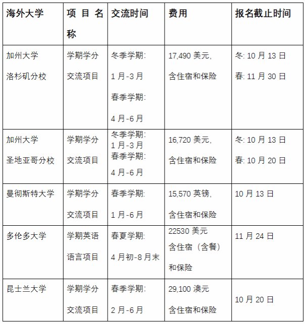 2.项目费用中包含:学费、住宿费和保险费。此外,学生还需自理护照签证办理费用、国际航班费用、餐费、交通费等个人日常花费。
