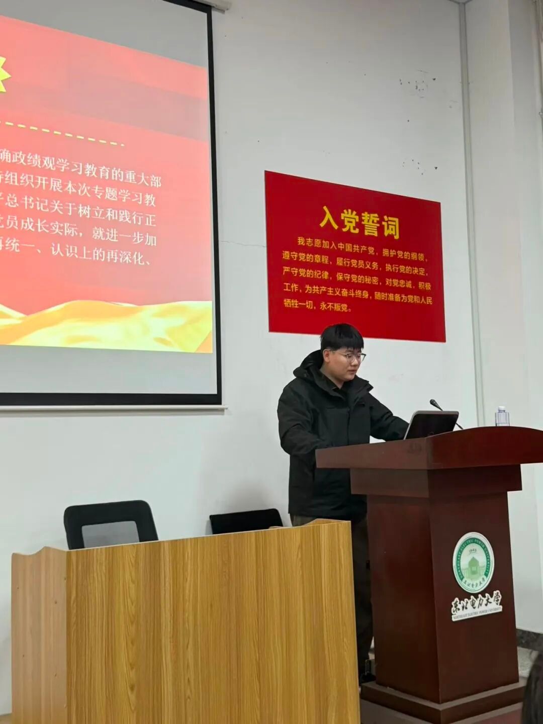 随后,支部学生代表依次分享政绩观学习心得。学生第二党支部党员代表解洪坤以 “牢固树立正确政绩观 奋力推进高质量发展” 为主题,号召党员同志在学习和工作中求真务实、真抓实干。张龄以 “正确政绩观的内涵与时代意义” 为主题,系统讲解了正确政绩观的核心要义,强调要将为民造福作为最大政绩,在实践中践行以人民为中心的发展思想。
