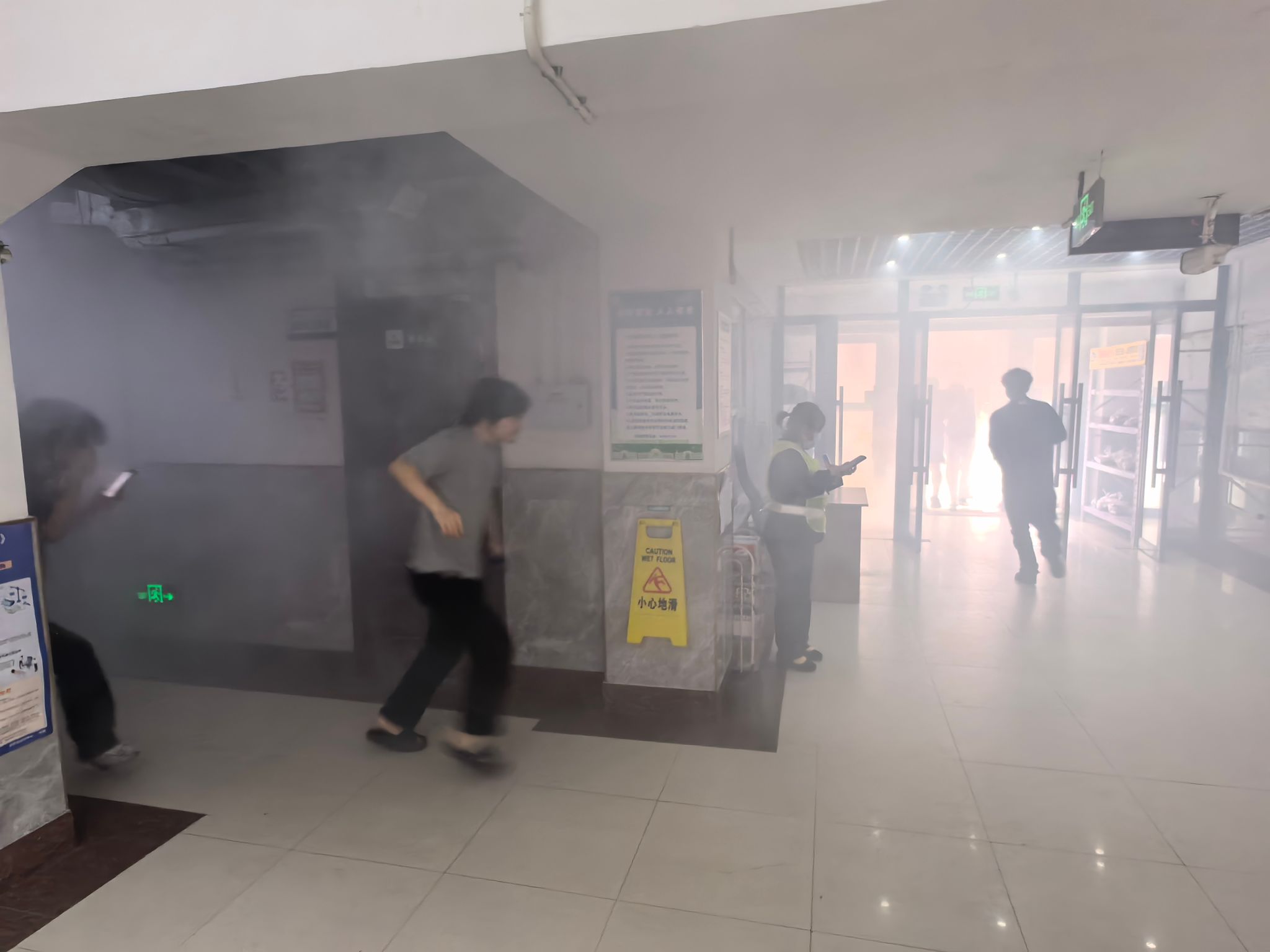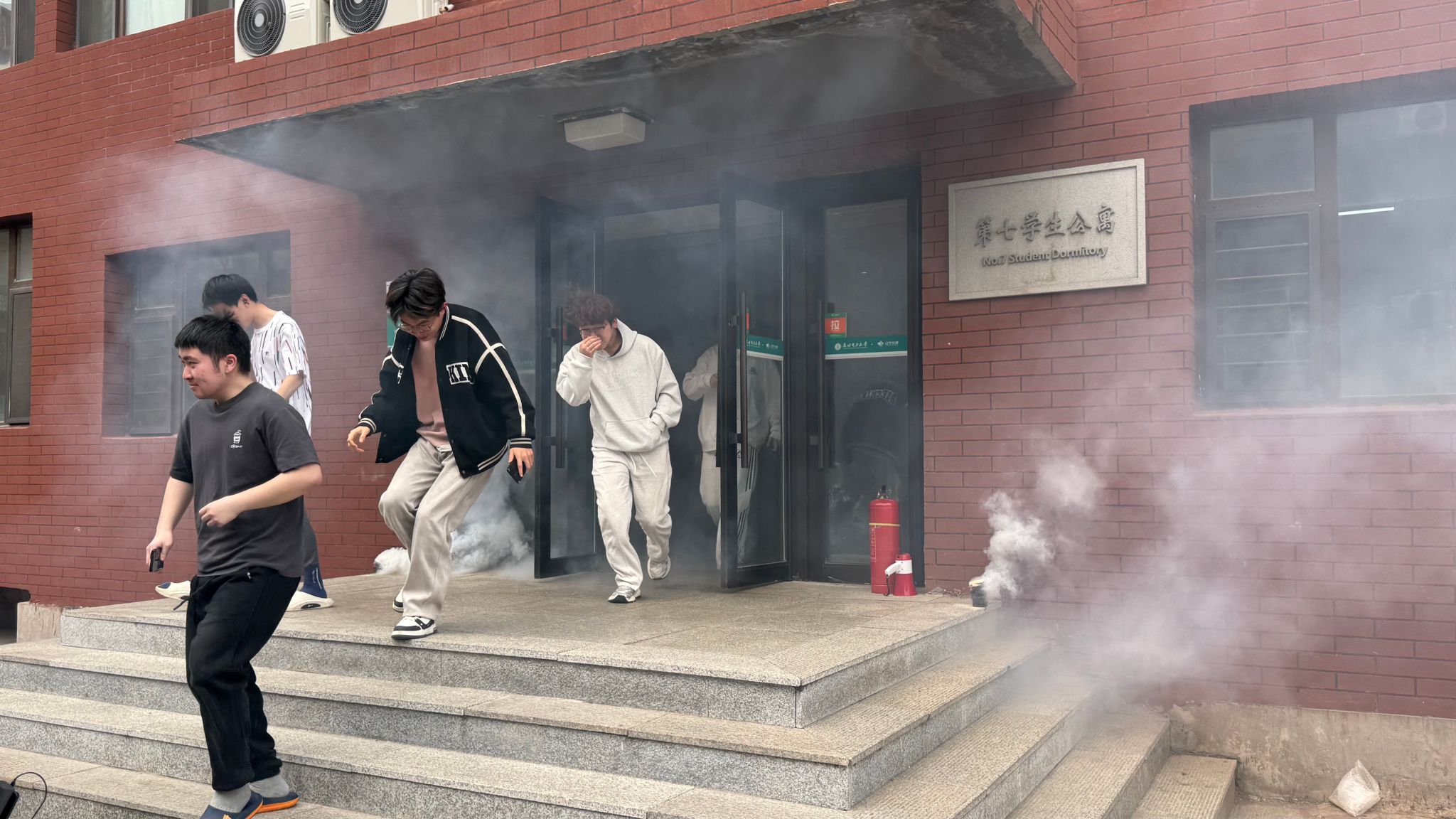 随着消防警报准时响起,演练正式拉开帷幕。模拟火情发生后,各楼层引导员迅速到位,现场指挥疏散工作,提醒学生捂住口鼻、弯腰贴墙,按照预先规划的疏散路线,快速有序撤离寝室。学生们沉着冷静、听从指挥,不推挤、不慌乱,在规定时间内全部安全抵达楼下指定安全区域。整个疏散过程紧张有序、衔接流畅,充分展现了师生良好的应急反应能力和协作配合能力。