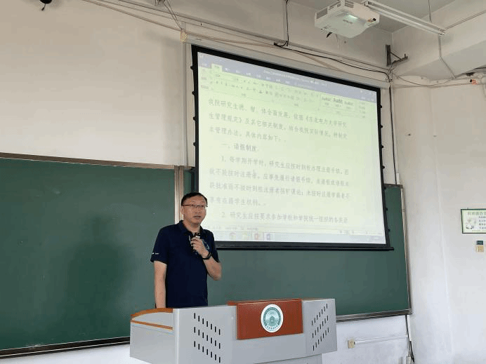 于东阶十合召开2024级研究生新生入学教育暨专业介绍会,会议由研究生辅导员王英乾老师主持。