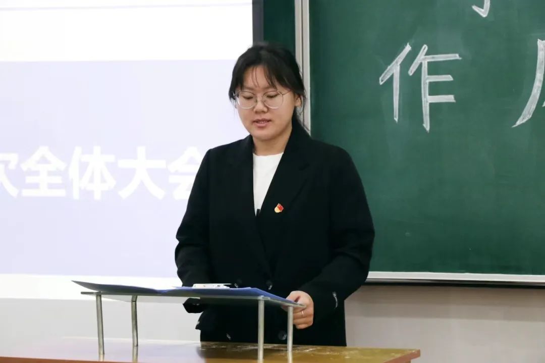 大会第三项,由团委书记田家伊老师进行本次会议总结。她首先向新成员表示欢迎,对各部门近期的工作给予了肯定,深入剖析了各部门存在的工作效率低、责任意识弱等问题。田老师讲话中多次强调各学生干部要明确身份意识,一是要在学业上努力提高学习成绩,让自己成为榜样激励身边的人共同追求卓越;二是要牢记自身工作职责,强化工作能力,严格要求自己,发挥好六合彩