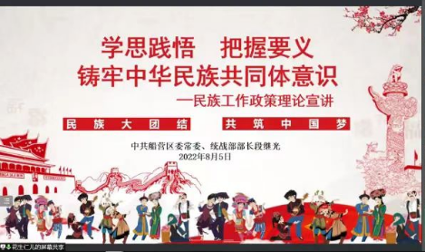 中共船营区委常委、统战部部长段继光通过腾讯会议为全校师生作题为“学思践悟,把握要义,铸牢中华民族共同体意识”的讲座。