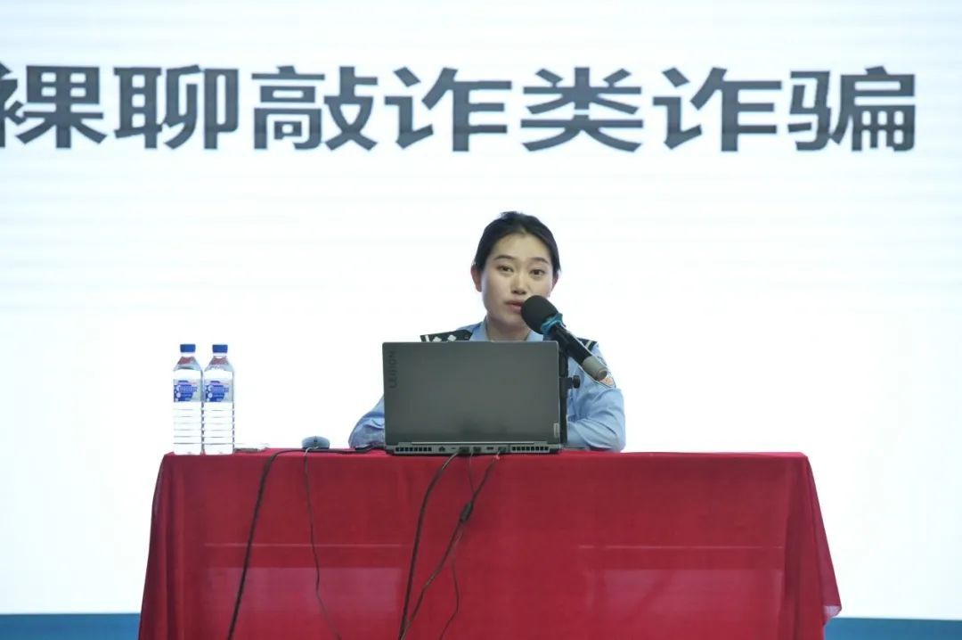 讲座伊始,市公安局反诈宣传大使、三级警长姜瑶筝结合办案实践与专业理论,系统阐释了电信网络诈骗的作案特征及社会危害。针对高校群体,其提炼出“身份不明主体+虚拟联络渠道+资金转账需求”的复合型识别标准,并援引2024年吉林市高校涉诈案件数据,重点剖析网络游戏虚假交易、刷单返利及裸聊敲诈三类典型作案手法,强调应恪守“正规平台交易、拒绝私下转账”的底线原则。