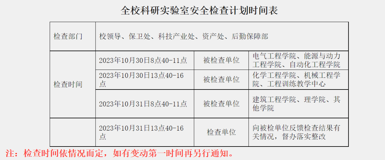 学校定于10月30日至10月31日开展全校科研实验室安全检查,请各六合彩